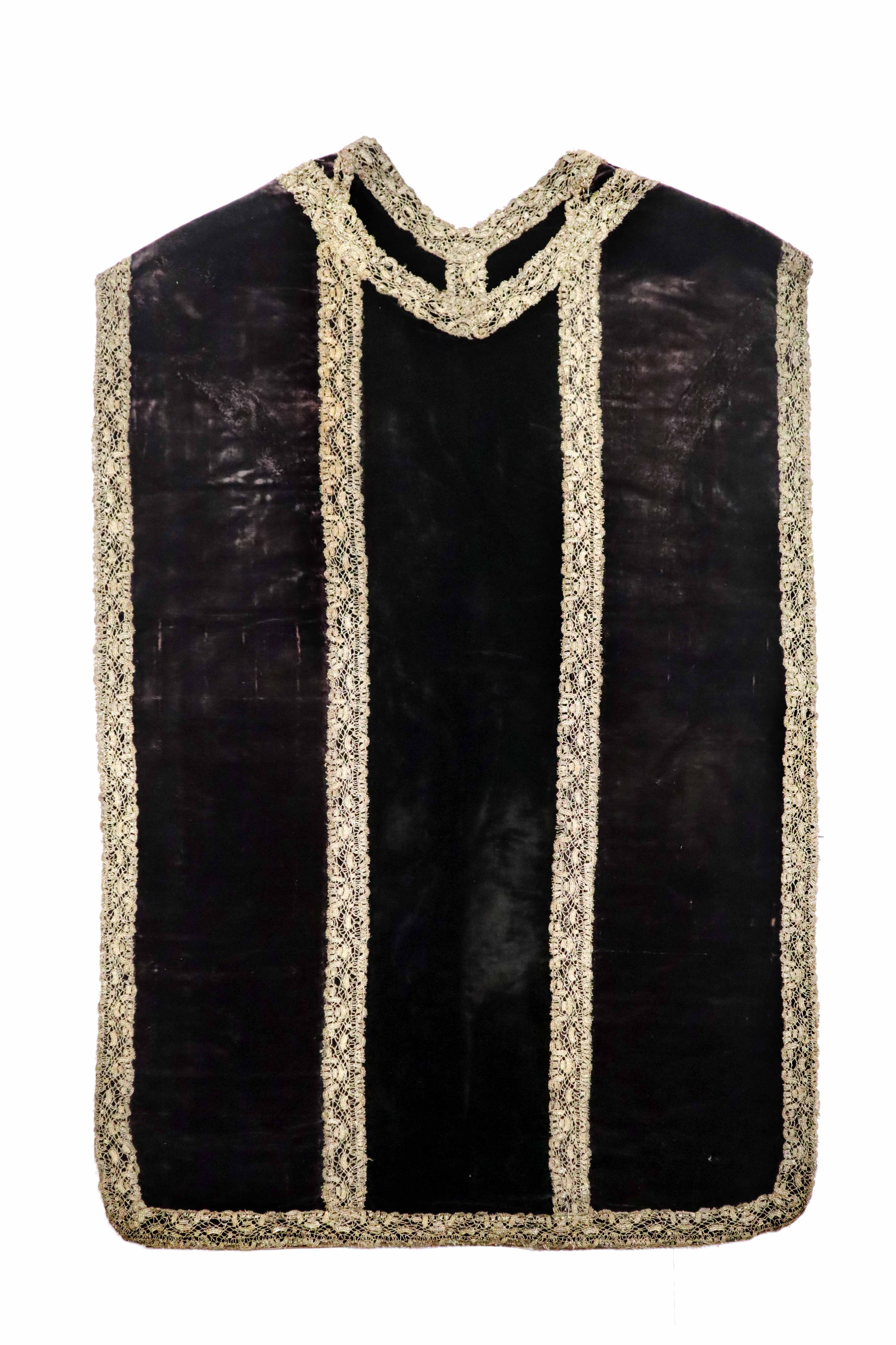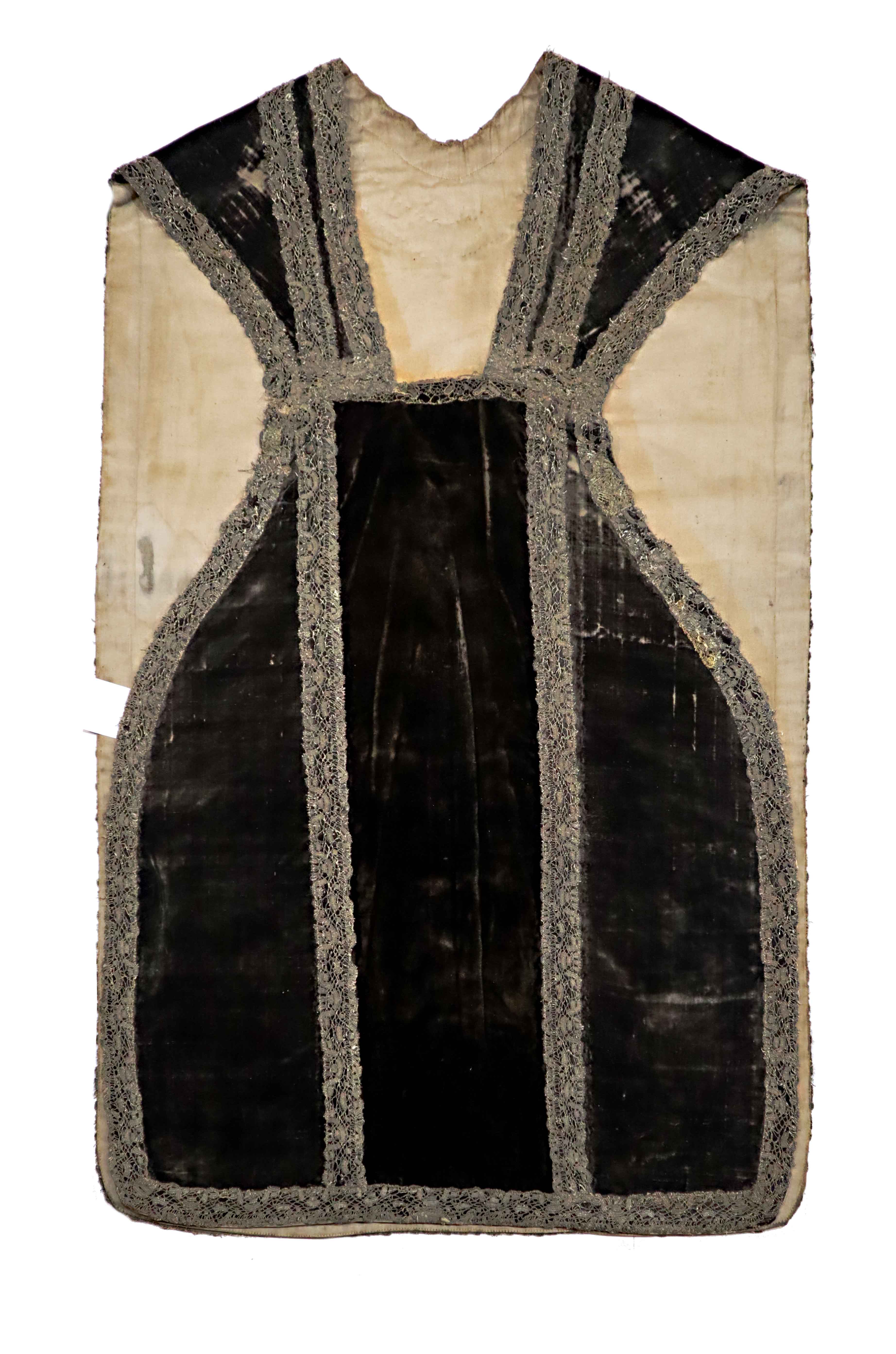 Strona główna Kościół pw. św. Jana Chrzciciela i św. Jana Ewangelisty w Toruniu Ornat czarny (O48), boki: XVIII w., Włochy; kolumny: 2 poł. XIX w.; koronka klockowa: XVIII w.