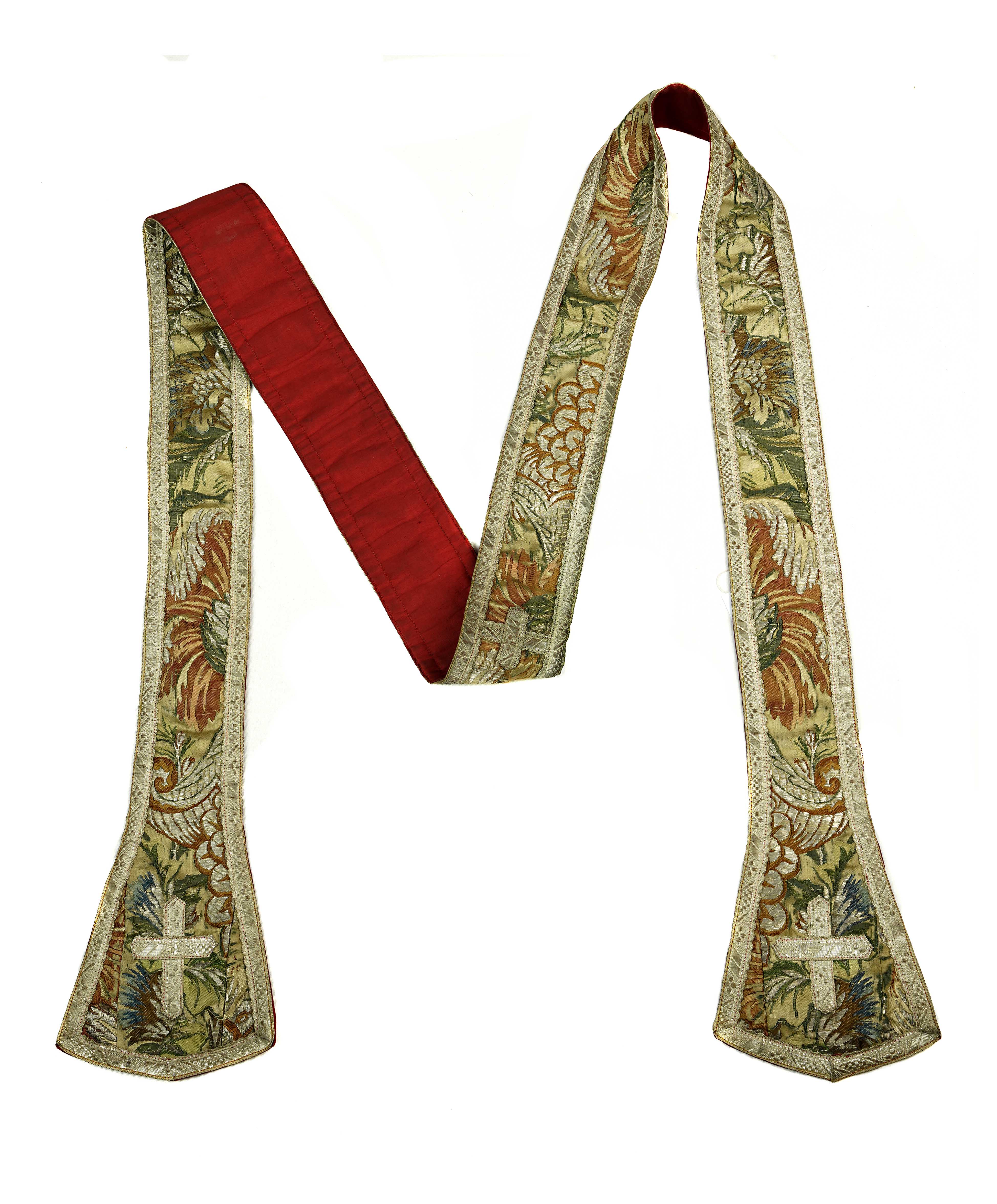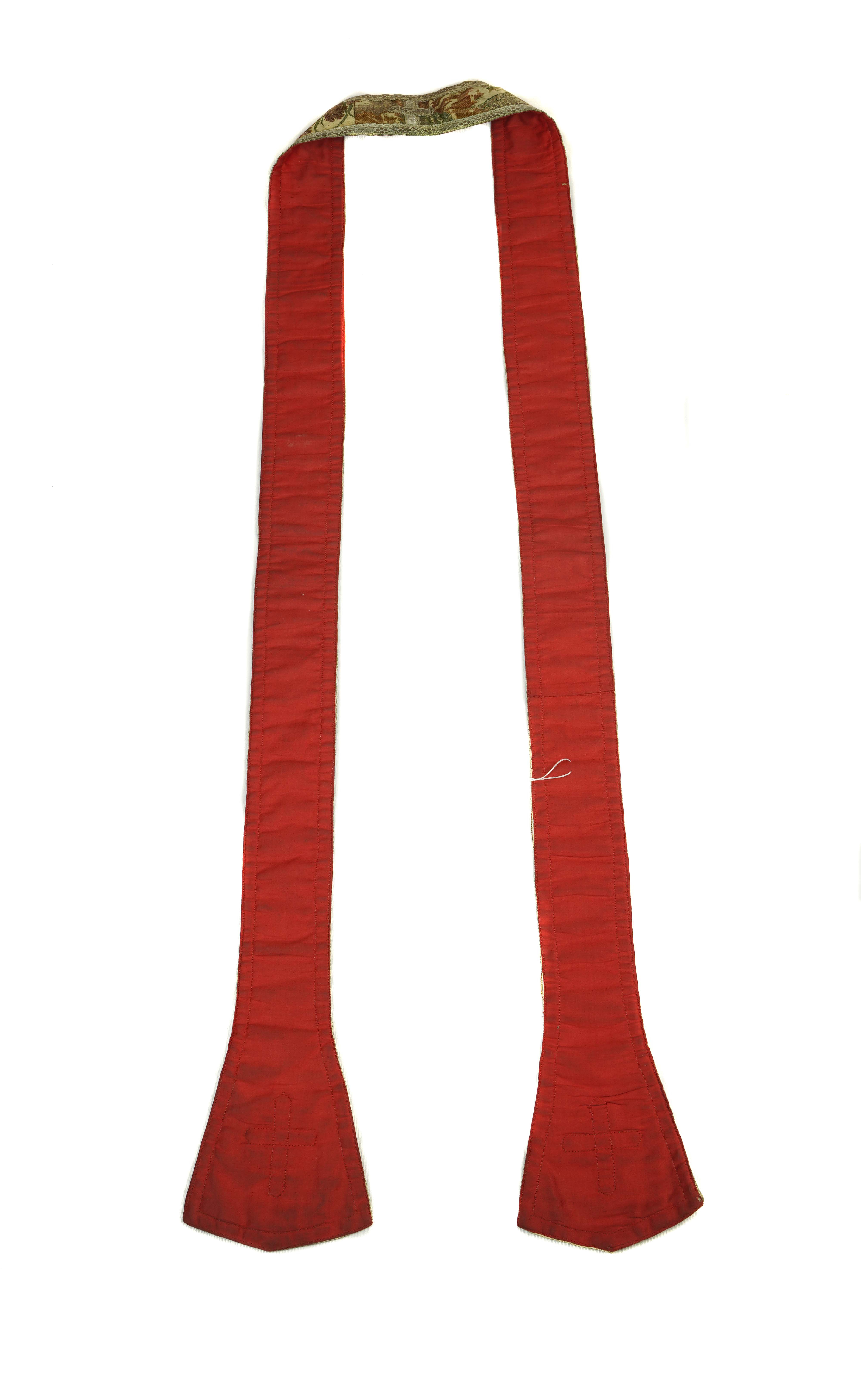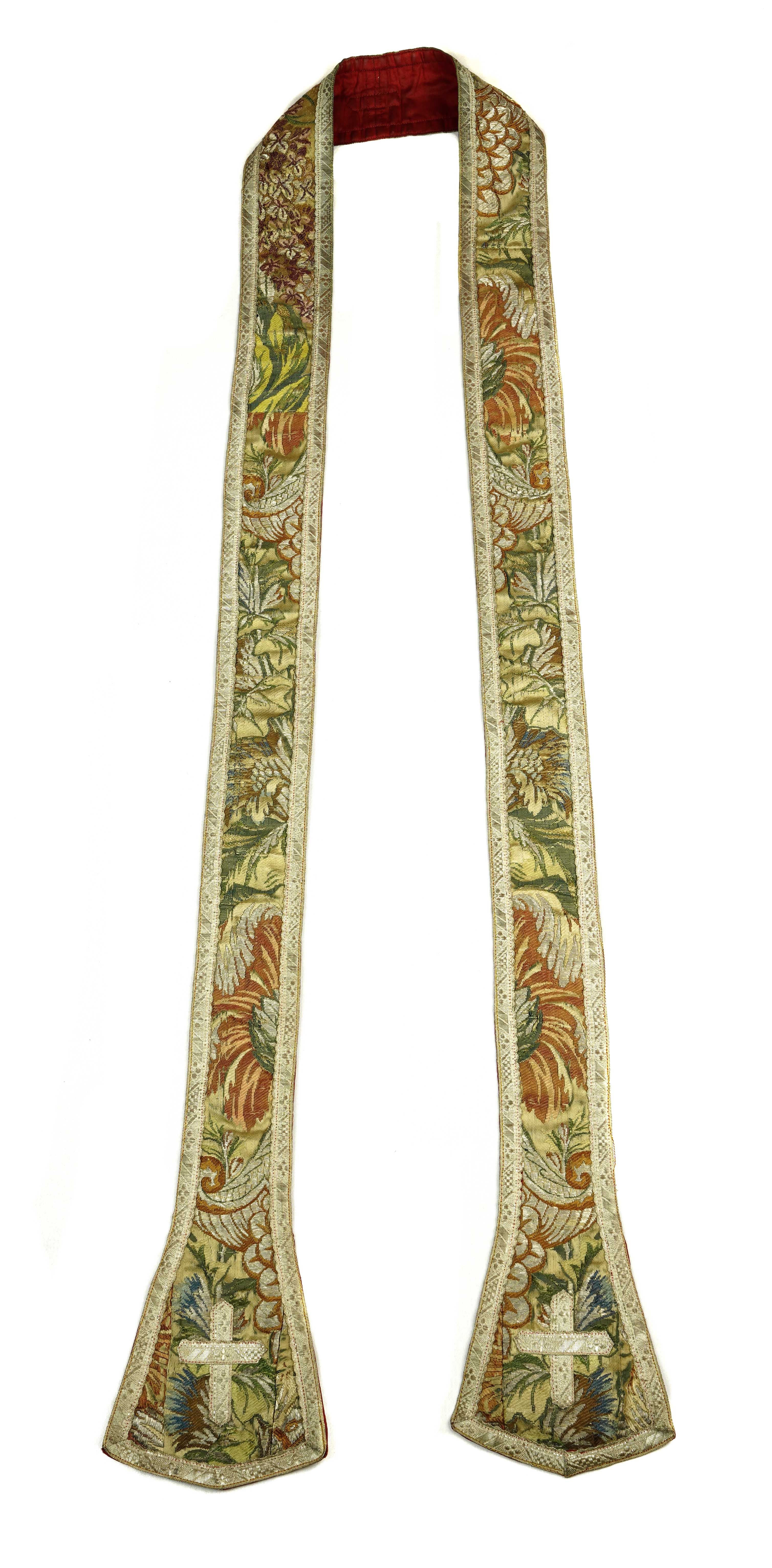 Strona główna Kościół pw. św. Jana Chrzciciela i św. Jana Ewangelisty w Toruniu Stuła biała (S80), tkanina wierzchnia: ok. 1730 r., Lyon – manufaktura Jeana Revela; galony: XIX / XX w.