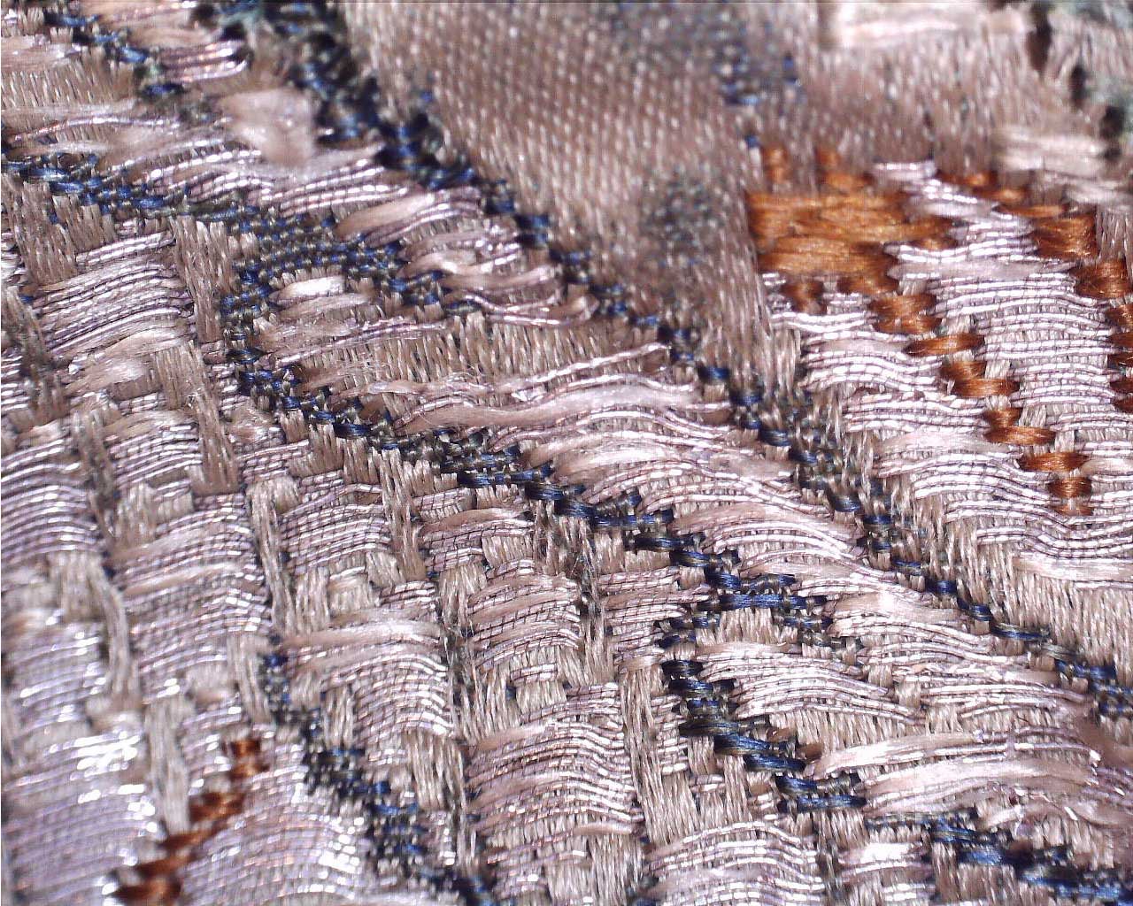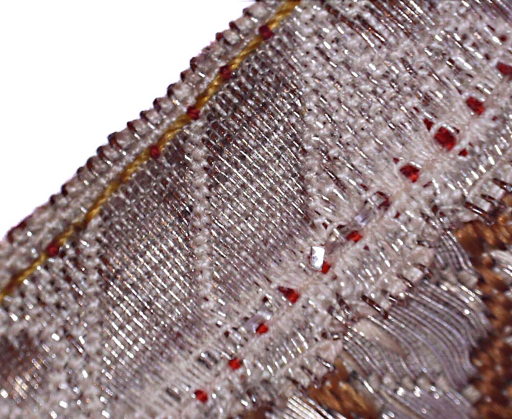 Tkanina ornatu wypłowiała na całej powierzchni ornatu, zwłaszcza z przodu. Przednia kolumna zabrudzona, na wysokości piersi przetarta. Nici metalowe skorodowane, częściowo wykruszone.