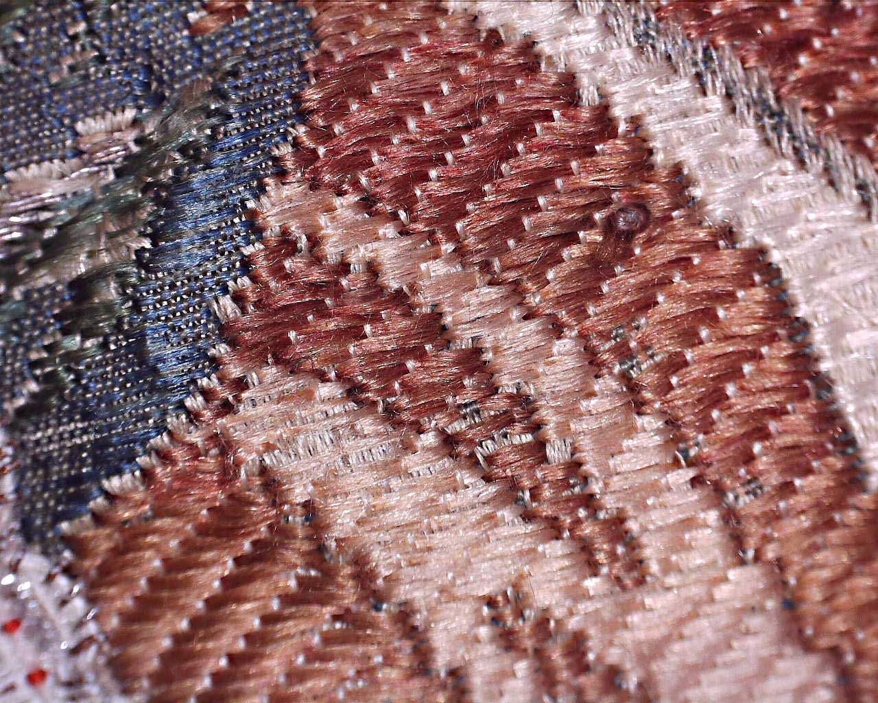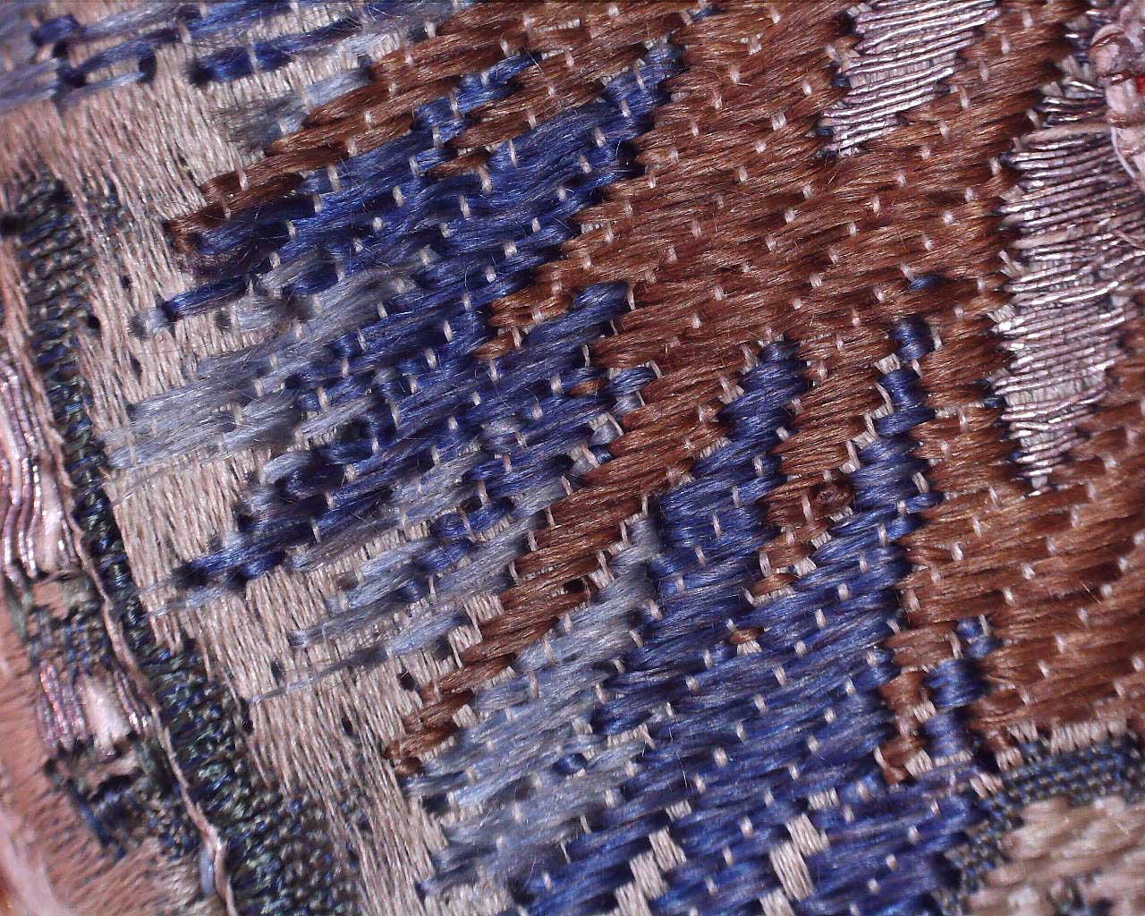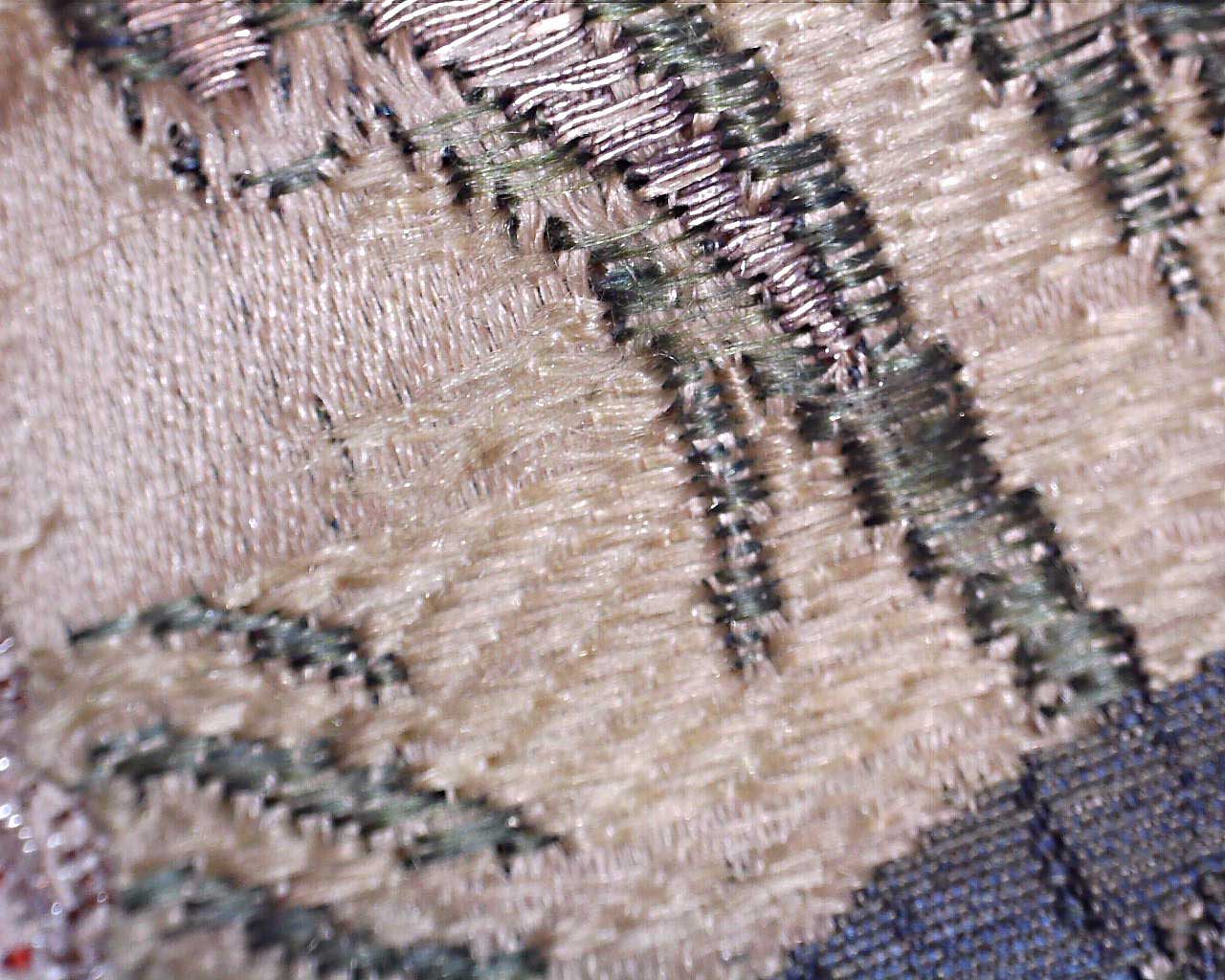 Garnitur ten wykonano z tkanin w stylu Jeana Revela, francuskiego projektanta tkanin działającego w latach 30. XVIII w. Opracował technikę tkania tkanin o raportach bardzo realistycznych inspirowanych holenderskimi martwymi naturami. Tkaniny projektowane przez Revela charakteryzują się dużym stopniem realizmu – rośliny mają bardzo przeskalowane, bujne formy – wręcz na granicy zepsucia. Charakterystyczne jest także cieniowanie najbardziej oświetlonych partii wzoru nicią w kolorze srebrnym, tworząc tzw. efekt błyskawicy.